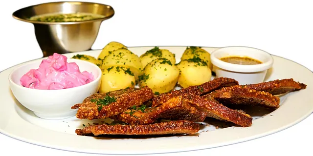 med lækker sprødstegt Flæsk